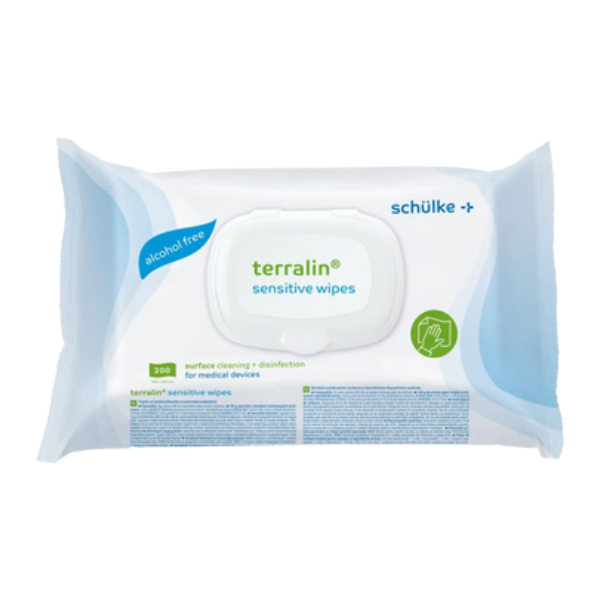 A termék alkalmas orvostechnikai eszközök tisztítására és fertőtlenítésére. Rendkívüli anyagkompatibilitásának köszönhetően az érzékeny felületek specialistája. A kórházakban nagyon gyakoriak az érzékeny anyagok, ezért a terralin® sensitive egyesíti a jó hatékonyságot a kiváló anyagkompatibilitással. Még az ultrahang fejek* is fertőtleníthetők a terralin® sensitive törlőkendővel.